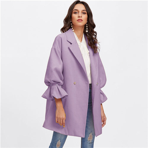 Pur Drop Shoulder Pearl Detail Ruffle Cuff Solid Coat