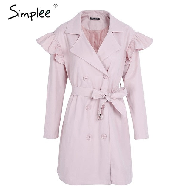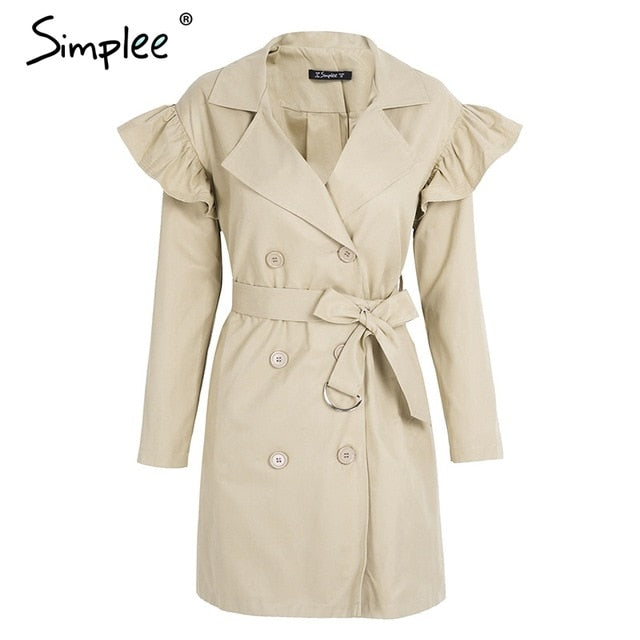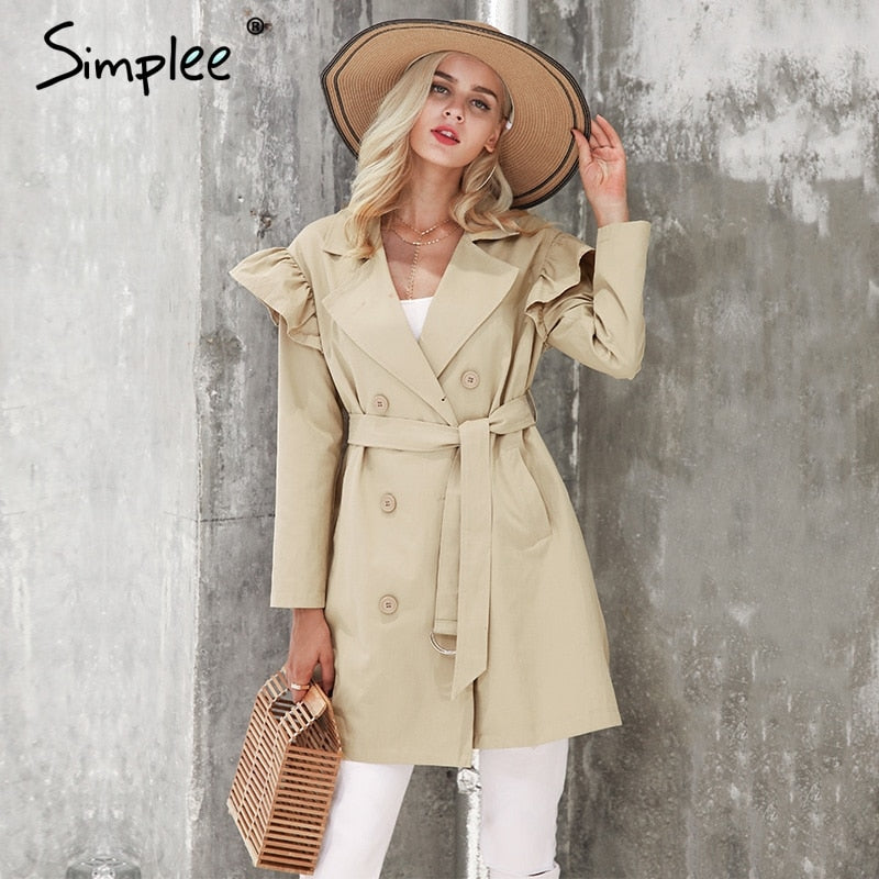 Ruffle trench coat women outerwear & coats Autumn sash pocket streetwear trench