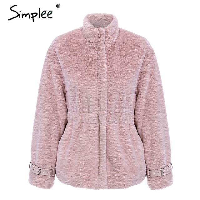 faux fur coat women Autumn winter soft zipper fur jacket elastic waist long sleeve overcoat