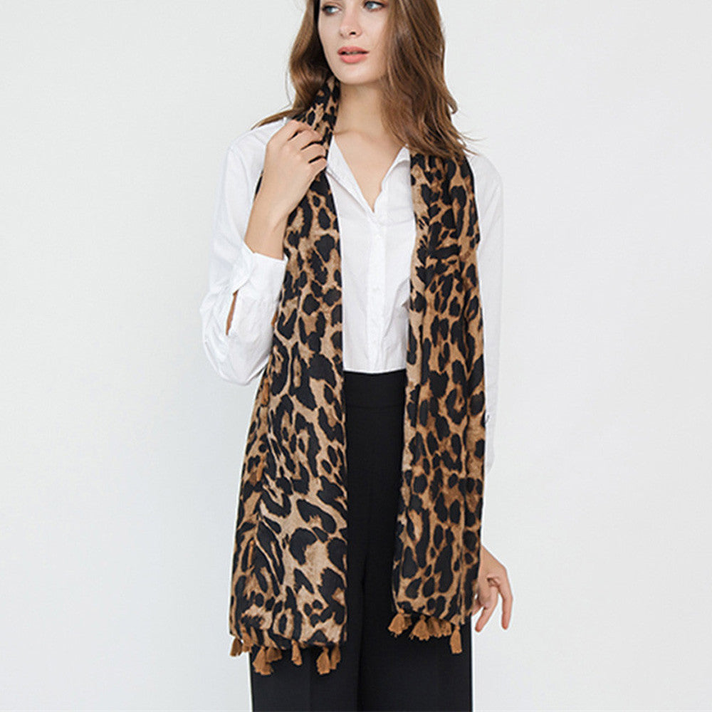 Autumn Classical Leopard Printing Twill Tassel Fashion Women Scarf Winter Shawl